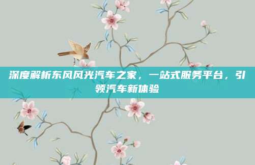 随着汽车行业的快速发展,消费者对于汽车服务的需求日益多样化,在这样的背景下,东风风光汽车之家应运而生,成为了一个集汽车销售、维修保养、配件供应、二手车交易等功能于一体的综合性服务平台,本文将深入解析东风风光汽车之家,带您了解其如何引领汽车新体验。
