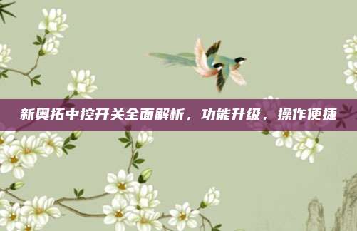 随着科技的不断发展,汽车内饰的设计和功能也在不断升级,新奥拓中控开关作为一款集实用性与美观性于一体的汽车配件,受到了越来越多消费者的关注,本文将全面解析新奥拓中控开关的功能、操作及特点,帮助您更好地了解这款产品。