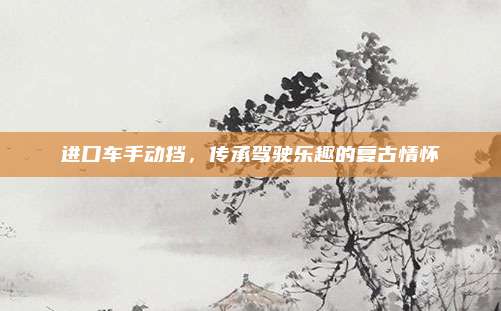 随着汽车技术的飞速发展,自动挡车型逐渐成为了市场的宠儿,在众多进口车型中,手动挡车型依旧以其独特的驾驶乐趣和复古情怀,吸引着一批忠实的粉丝,本文将带领您领略进口车手动挡的魅力,为您解析其独特之处。