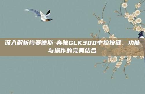 在汽车行业报告中,据《中国汽车消费趋势报告》显示,近年来,随着消费者对汽车品质和智能化需求的不断提升,高端SUV车型在市场中的地位逐渐上升,梅赛德斯-奔驰GLK300凭借其卓越的性能和精致的中控按键设计,赢得了消费者的青睐。