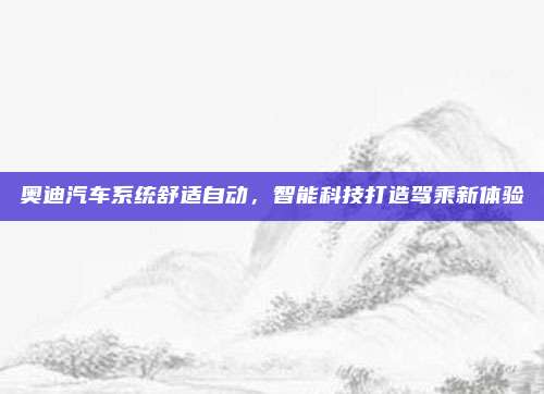 随着科技的不断发展,汽车行业也在不断推陈出新,力求为消费者提供更加舒适、便捷的驾乘体验,在众多豪华汽车品牌中,奥迪以其卓越的品质和先进的科技赢得了消费者的青睐,我们就来详细了解一下奥迪汽车系统舒适自动,感受智能科技带来的非凡驾乘体验。