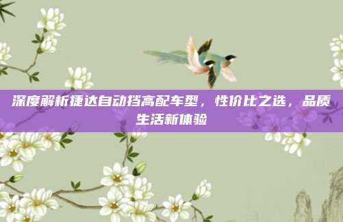 在汽车市场上,性价比一直是消费者关注的焦点,作为一款经典车型,捷达以其出色的品质和可靠的性能,赢得了消费者的喜爱,我们将为您深入解析捷达自动挡高配车型,让您全面了解这款车型在市场上的表现。