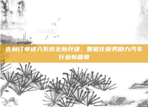 吉利订单进入系统全新升级,智能化服务助力汽车行业新篇章