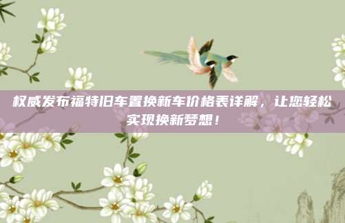 随着我国汽车市场的不断发展,越来越多的消费者开始关注汽车置换服务,福特汽车作为知名汽车品牌,凭借其高品质的产品和服务,吸引了大量消费者,为了满足消费者的需求,福特推出了一系列旧车置换新车的优惠政策,本文将为您详细介绍福特旧车置换新车的价格表及相关信息,助您轻松实现换新梦想。
