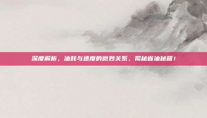 深度解析,油耗与速度的微妙关系,揭秘省油秘籍!