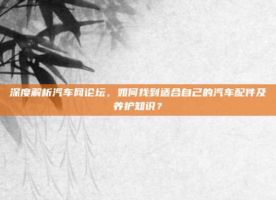 深度解析汽车网论坛,如何找到适合自己的汽车配件及养护知识?