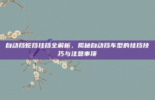 自动挡蛇挡挂挡全解析,揭秘自动挡车型的挂挡技巧与注意事项